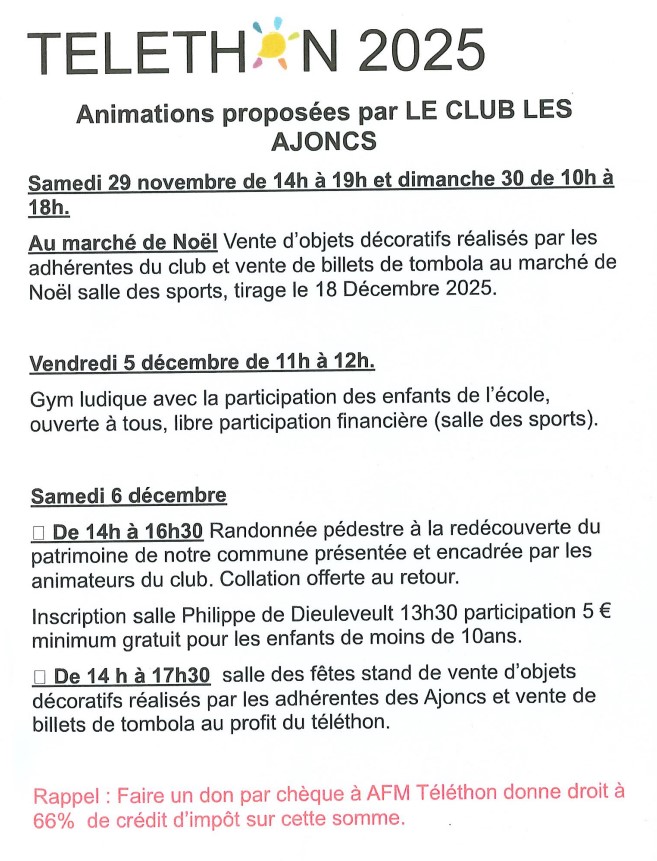 Téléthon - Animations proposées par Le Club des Ajoncs et la médiathèque